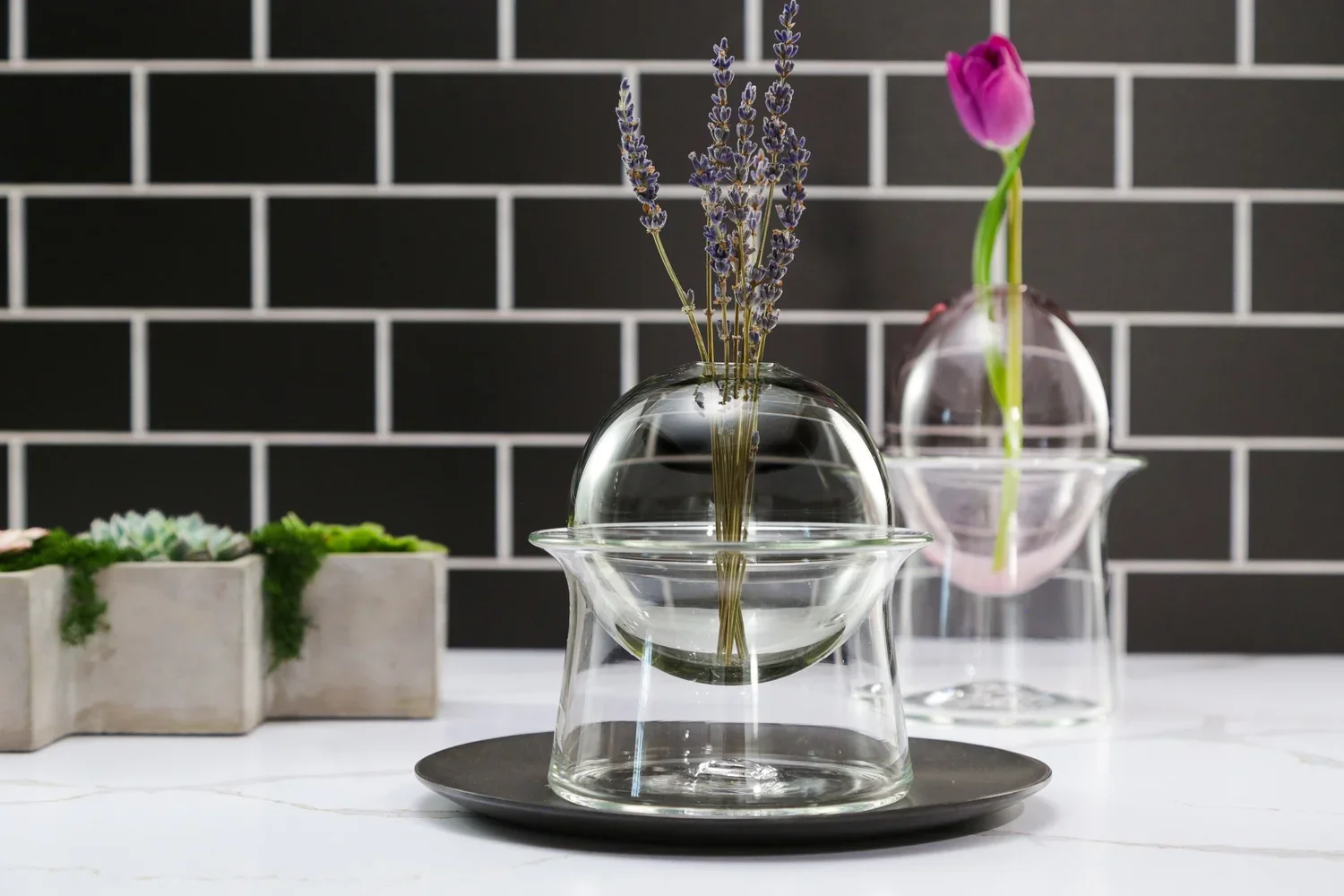 Tyler Barry Design is best known for producing refined, hand-blown glass pieces that balance utility and beauty. Barry’s latest collection—which includes barware, drinking glasses, and modern home décor—draws inspiration from the iconic principles of Bauhaus and Mid-Century Modern design. Clean geometry, restrained palettes, and purposeful simplicity define this body of work. Each piece is intentionally crafted to elevate everyday rituals while functioning as sculptural art within the home.